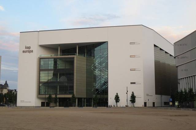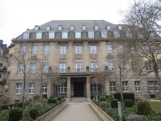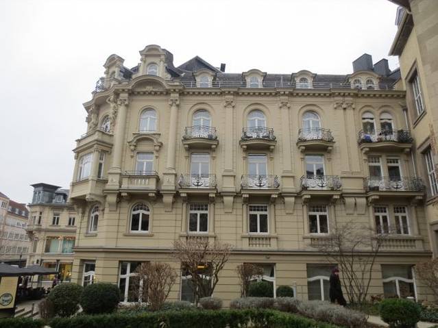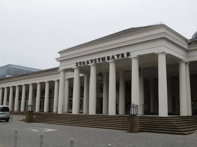 大楼旁边就是剧院柱廊和巴洛克风格的黑森州国家剧院,剧院对面就是欧洲最长柱廊,柱廊长129米,那里还有另外的会议厅,可为主题展览、特色展会或其他活动提供场所,威斯巴登小赌场也在柱廊里。