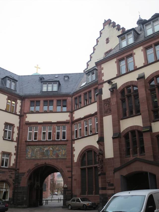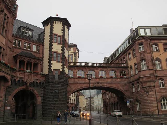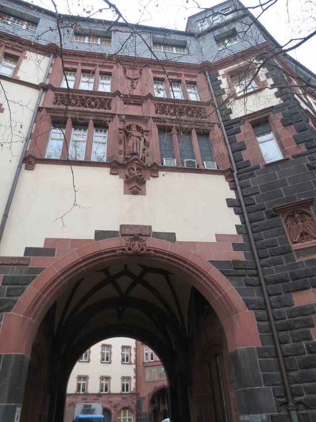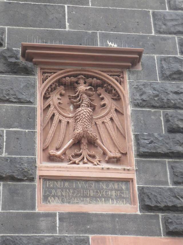 门洞上法兰克福市的市徽,只是不知道这个鹰的头为什么与真正的市徽上鹰头方向相反,难道有什么故事或说法?无知的路过。