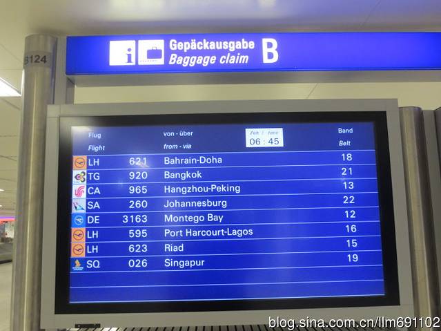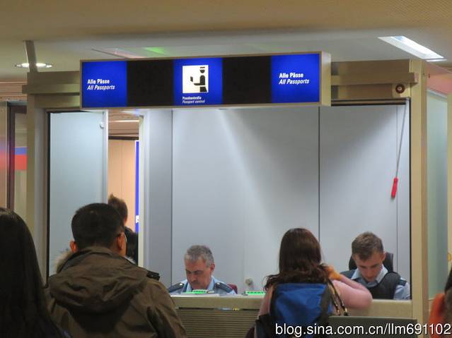 飞机6:00到达法兰克福,晚点50分钟。走下飞机,准备好护照,跟随蓝色提示牌,随着人流到达护照检查处(Passkontrolle),准备出海关,非欧共体国(包括中国)的乘客记得走“All Passports”通道,另一个通道虽然人少,但仅供欧盟成员乘客通过。
