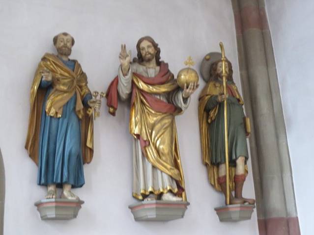 墙上精美的众神雕塑,色彩鲜艳,与一般教堂的古朴色彩大不相同