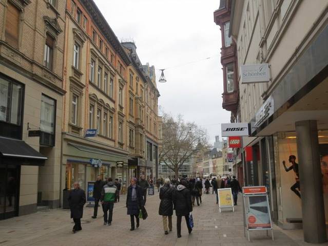 威斯巴登市区商店里的商品琳琅满目,也别有情趣,大型连锁商店的分店与个性化的专卖店互相补充。在威斯巴登有一条长一公里多的步行街,即朗恩巷和科尔施巷,那里有德国大型连锁百货公司的分公司,也有其他商店,还有很多餐饮业的店铺,日用饰品的专卖店也很火爆,专门经营年轻人服饰的商店,还有其他品牌商店。
