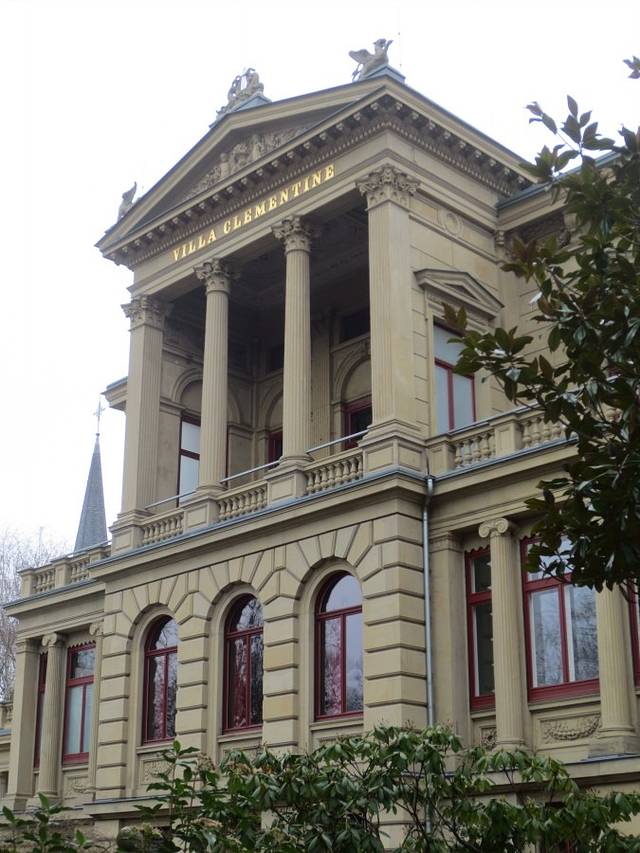 具有罗马庞贝建筑风格的科蕾蒙蒂娜别墅是1882年为德国一位企业家和他的夫人科蕾蒙蒂娜建造的。1888年科蕾蒙蒂娜别墅因"塞尔维亚王子劫持案"作为当时各大报纸的头版新闻而出了名,当时塞尔维亚王后娜塔丽带着王太子亚历山大从他的丈夫塞尔维亚国王米歇尔那里逃到威斯巴登,在威斯巴登的四季酒店短住之后,娜塔丽王后选中科蕾蒙蒂娜别墅作了自己的住所,后来,小王子在当时威斯巴登警察局局长和塞尔维亚战争部部长的帮助下回到了家乡,接着,娜塔丽王后也离开了威斯巴登。1987年,在科蕾蒙蒂娜别墅又拍摄了电视连续剧《布登勃洛克一家》,至今,别墅的二楼还保持着当年拍电视时的内部场景。1960年开始,科蕾蒙蒂娜别墅就成为了各种文化活动的举办地,2001年威斯巴登文学之家搬到了科蕾蒙蒂娜别墅。