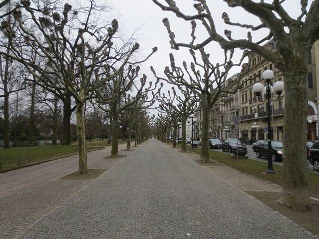 小路两旁种满了树木,是法国梧桐吧,冬末的季节没有树叶,给人一种怪异的感觉。