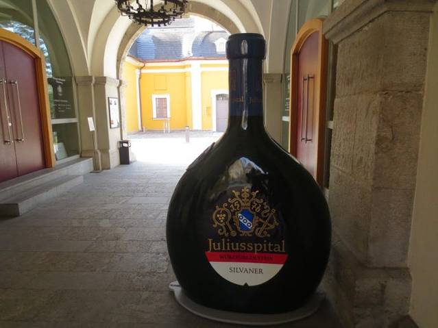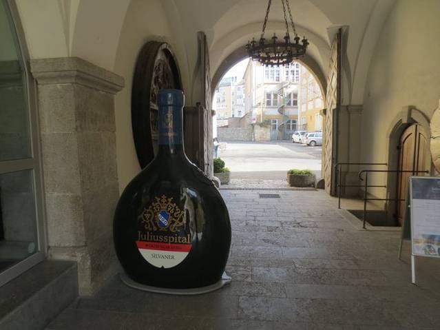 酒庄的一个大门正对着车辆物流入口,墙上写着Juliusspital,与车辆入口大门上的名字一致,又刚好看到两个游人和巨大的酒瓶,于是,带着好奇,不经意间走进了尤利斯医院酒庄的大门,当时并不知道这座院落是干什么的。