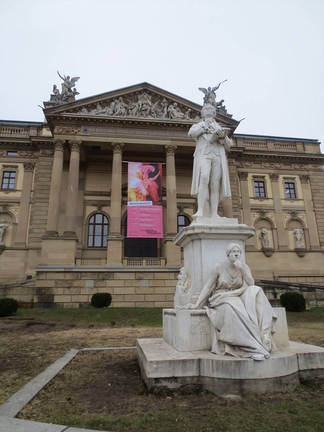 威斯巴登博物馆及门前的歌德纪念像