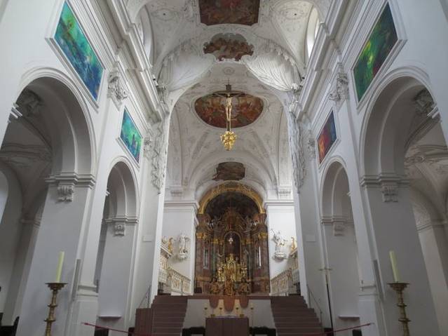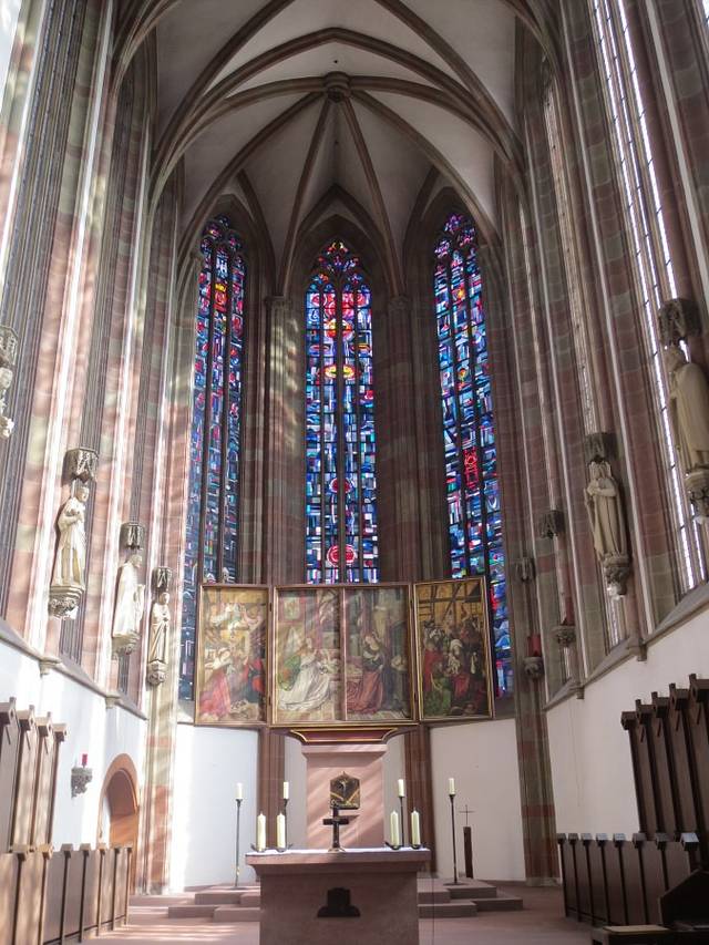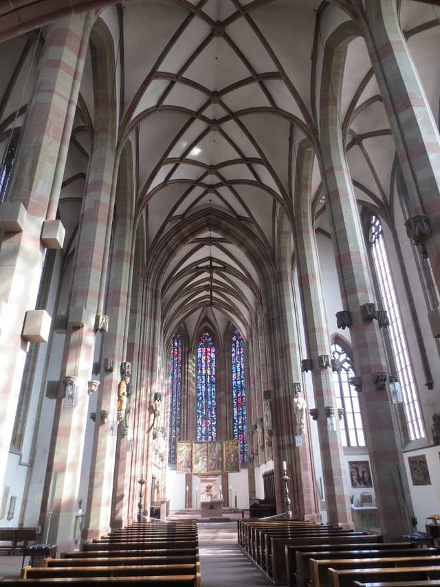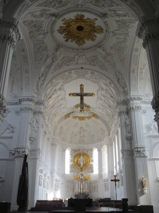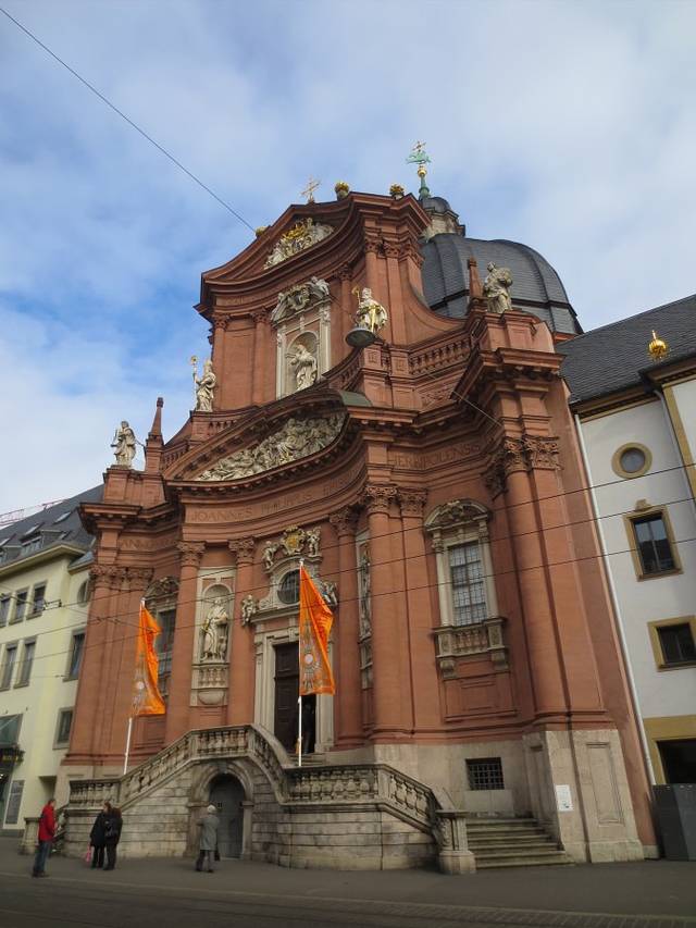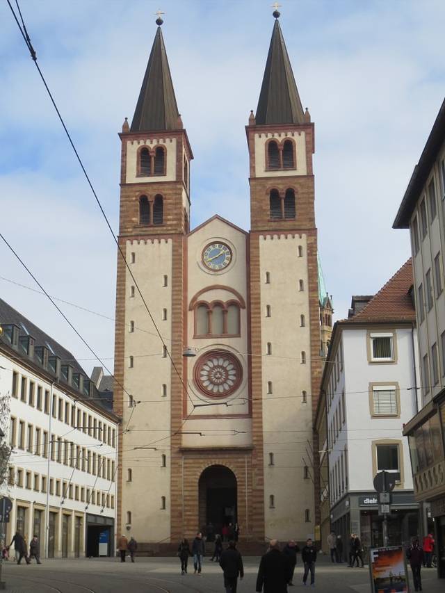 新明斯特教堂Das Neumünster 就在圣基利安大教堂Dom St.Kilian的旁边,它是11世纪时,和主座教堂Dom 在差不多时间里建造起的罗马式建筑,13世纪时加盖了威武壮观的圆顶,17世纪时又建造了精雕细刻的前正墙。如今拥有一个非常巴洛克的外立面和穹顶。教堂旁边还有一个小巧幽静的修道院花园(Lusamgärtchen)。