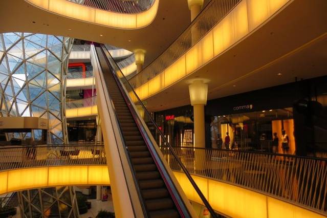 在购物中心的一楼有一个长达47米的自动扶梯直达购物中心六层。