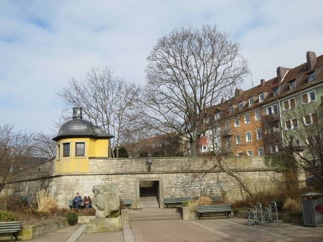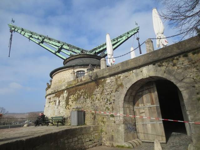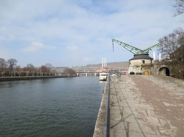 推开厚重的木门,看到的是一根警戒线的绳子,真的搞不懂,既然写着入口,为什么用绳子圈起来?反正我是从这扇推开的厚重木门外的绳子下钻过来的。晴朗的天空下,老式起重机的起重臂像张开的臂膀,拥抱着蓝天白云,又像代表胜利的“V”,诉说着它过去辉煌的历史,更像一个迟暮的老人,注视着河水的荣枯,成市的变迁。一对老人坐在长椅上晒着温暖的太阳,享受着冬日难得的晴好天气。个人感觉维尔茨堡就像一座迟暮的城市,城里老年人居多,看不到像法兰克福那么多充满活力的年轻人。