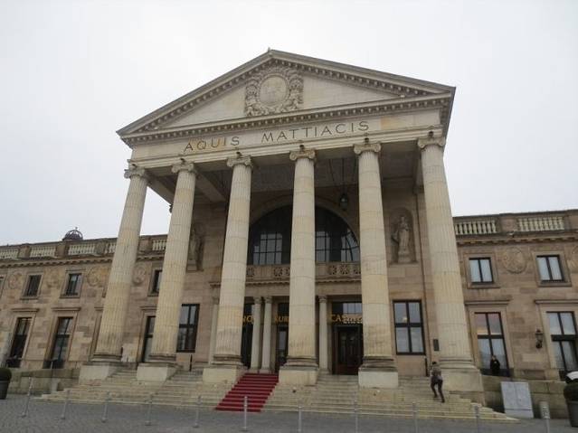 疗养大楼(Kurhaus),威斯巴登的疗养大楼是一座古典传统与现代科技相结合的建筑整体,是威斯巴登的地标建筑,集典雅秀美、先进实用和休闲娱乐于一体。它是1907年由德皇威廉大帝二世(Kaiser Wilhelm II)下令建造的一座富丽堂皇的大楼,他出席典礼时称之为“世上最美的温泉”。后毁于二战。1983年开始对疗养大楼进行了全面彻底的修复,1987年12月4日装修一新的疗养大楼正式对外开放,成为一个集剧院,会展中心和赌场于一身的多功能大厦。威斯巴登赌场是德国最古老的赌场之一,加冕的统治者、音乐家、文学家都纷纷涌向威斯巴登一试自己的手气。其中最著名的一位就是俄罗斯作家陀思妥耶夫斯基,1865年他在这里输了个精光,然后把自己的这段经历写成了那本著名的小说《赌徒》。今天,赌场还保留着当时让陀思妥耶夫斯基疯狂下注的轮盘赌的轮盘,供大家参观。现在威斯巴登赌场设在疗养大楼的葡萄酒大厅里,是德国最古老的赌场之一,除了法式和美式轮盘赌以外,还有黑杰克和扑克等。2001年自动博彩机厅设在了疗养大楼旁边的柱廊大厅里,这里约有220台自动博彩机。