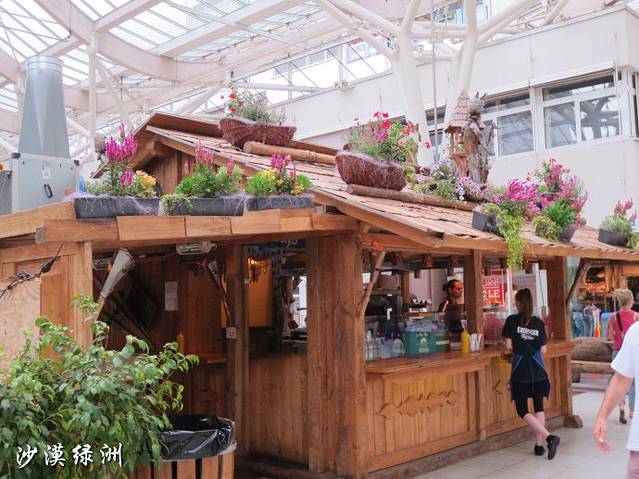 商场内的冰饮小屋,看上去很有情调。木质的小屋周围布满了花花草草。