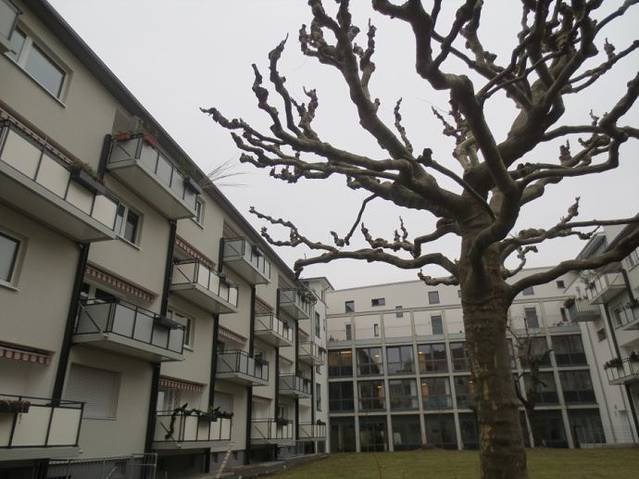 一处楼房前的梧桐树,冬日的梧桐被剥去了美丽的外衣,丑陋的样子有些奇形怪状的感觉,如同魔法森林里被施了魔法的大树。
