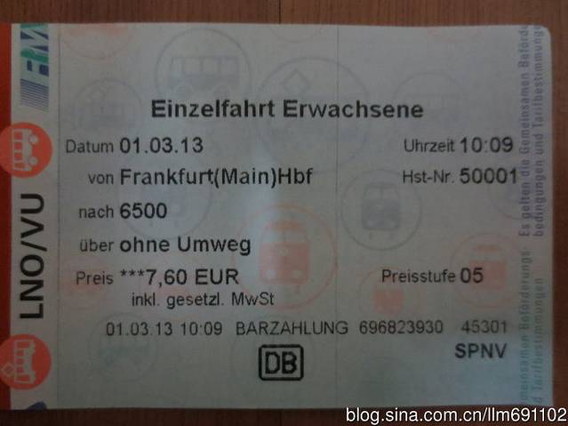 到威斯巴登的火车票,7.6欧元。