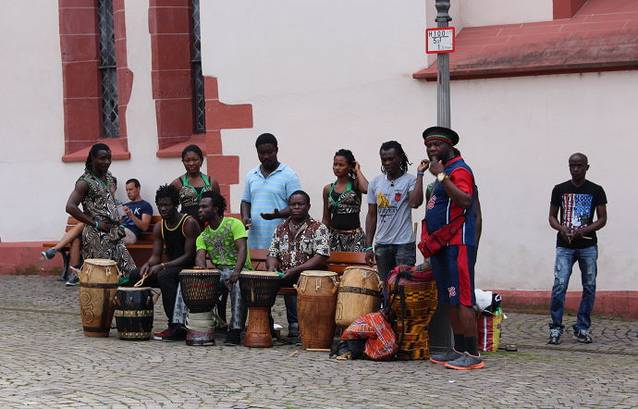 老尼古拉教堂前据说是从科隆过来表演的非洲乐队,不知道他们来了多少人,后来在美茵河边和采尔大街上又碰到了穿着同样服饰载歌载舞的非洲伙伴们。