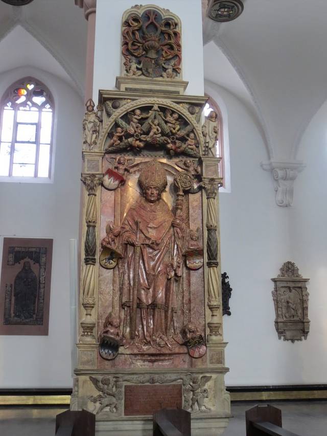 众人瞻仰的主教墓碑是教堂的主体,侧殿中的两座红色大理石墓碑是里门施耐德设计的。