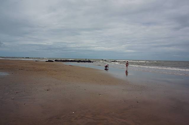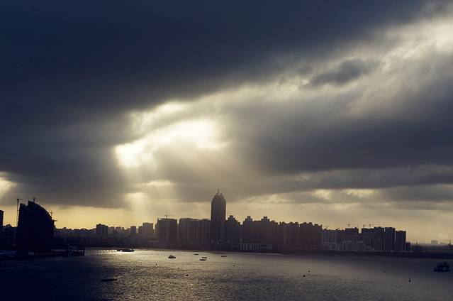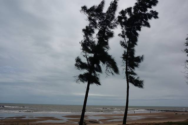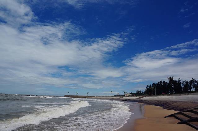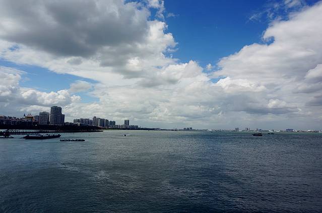 曾听说过,这里是风景美丽的滨海旅游度假胜地,礁石、海湾、沙滩的柔软度与北戴河、泰国芭堤雅沙滩一致,独特的角度也是旅游摄影(海浪、礁石、晚霞、朝霞、日出日落)的好去处。也曾有人形容吉兆湾的海好就好在养似在深闺、藏于边陲,椰影婆娑,极富亚热带海滨风光,别墅群成行成市,建筑风格不一而同,原来她如此风情万种,如今近在眼前,台风过后宁静如斯,还有什么比此时此刻更悠闲呢?唯一美中不足也因为台风,使得本来打算畅游大海的计划泡汤了。