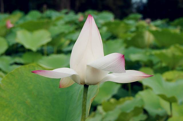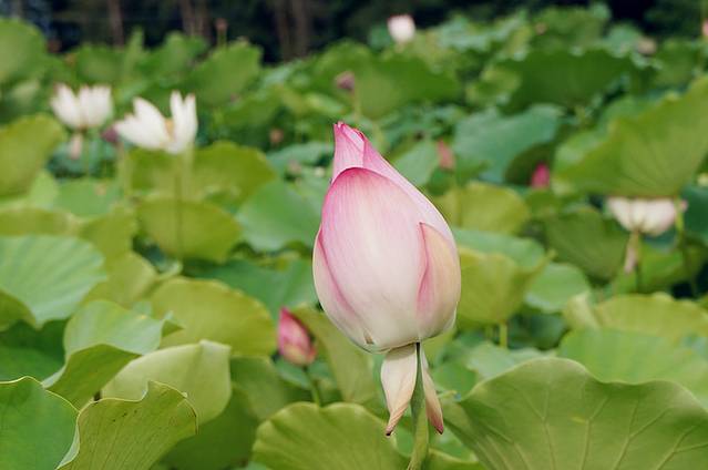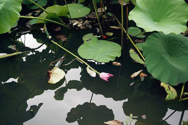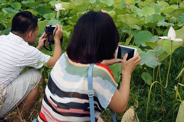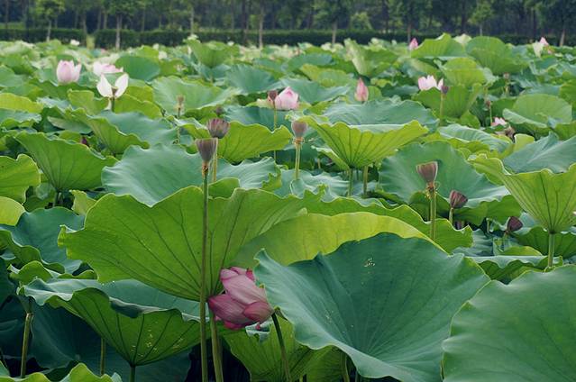 每年六、七月份的时候是荷花盛放的好时期。站在远处一看,荷叶翠绿欲滴,就像许多碧绿的大圆盘浮在水中,挨挨挤挤的,衬托着许多美丽的荷花。色彩鲜艳的荷花在阳光的照耀下倾斜着身子,犹如婀娜多姿的少女在羞涩的向游人招手!