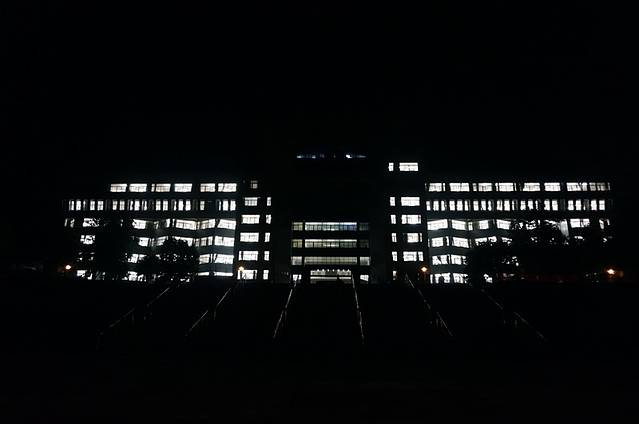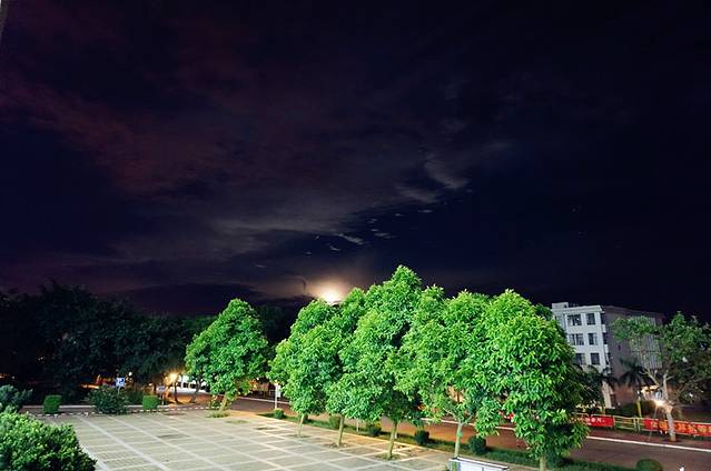 借WC为名进入学校教学楼,出来后竟然发现了夜色撩人的校园,甚是惊讶!
