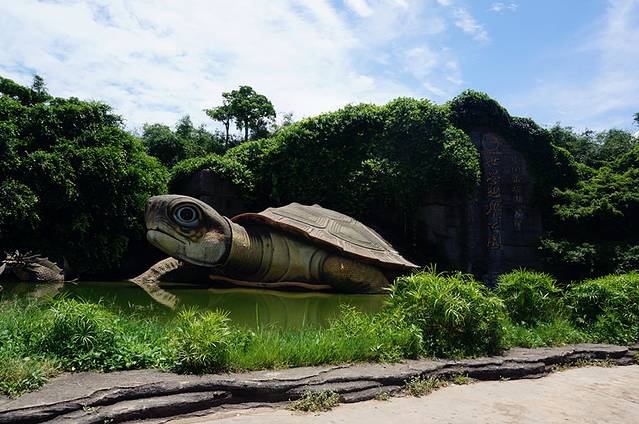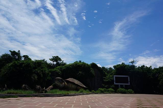 湖内观光可选择3种方式:步行,骑单车,搭乘小型观光车。我们果断的选择了前者,用足度量尺寸好像已经成为我们旅行不成文的规定。门口硕大的乌龟俨然成湖光岩国家地质公园的标志。沿着大门口进来,一排排参天椰树矗立于眼前,显然这里已经充满了无限亚热带风情。