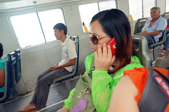 轮渡为小型船,可承载大概20人,要是海面浪花比较大,建议别走出船舱以免被浪花溅湿身体。