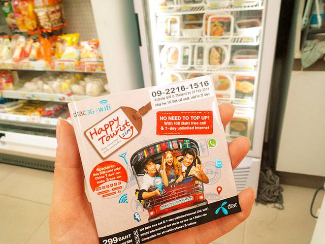 看过很多电话卡的介绍,但是作为一名懒人,最后我们还是选择了DTAC的HAPPY TOURIST,7天时间,不限网络流量,100泰铢电话费,299泰铢一张。