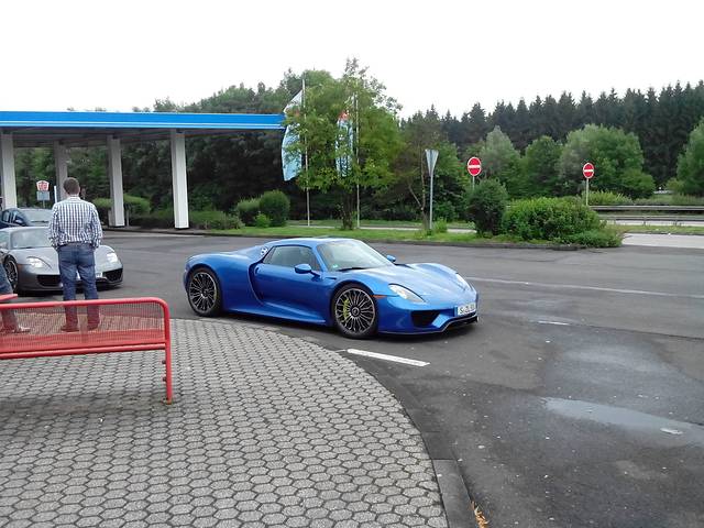 驶出山区在一个高速的休息站碰巧碰到了四辆918。和国内不同,开车的清一色的都是大叔,且副驾驶也是大叔:)。在高速上我还小挑战了918一把,油门到底,刚加速到200,就看不到尾灯了。。。