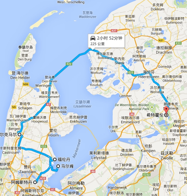 今天从阿姆斯特丹出发先去游览马尔肯,然后经阿尔克马尔,海防大堤到羊角村。