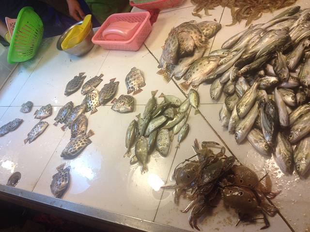 去海陵岛感受当地民风都回去的地方,一层海鲜大市场,各种新打捞上来的海鲜,还有好多不认识的鱼。因为主要自己做饭吃,所以老妈几乎每天早上都会去这个市场,常卖得海鲜有:虾,螃蟹,鱼,花甲,米螺。虾25一斤,花甲8元,米螺25,虾水煮蘸汁,花甲爆炒,米螺和鱼清蒸,还有一个特别好吃的叫墨鱼,爆炒特别好吃,甩开大连火爆由于100条街