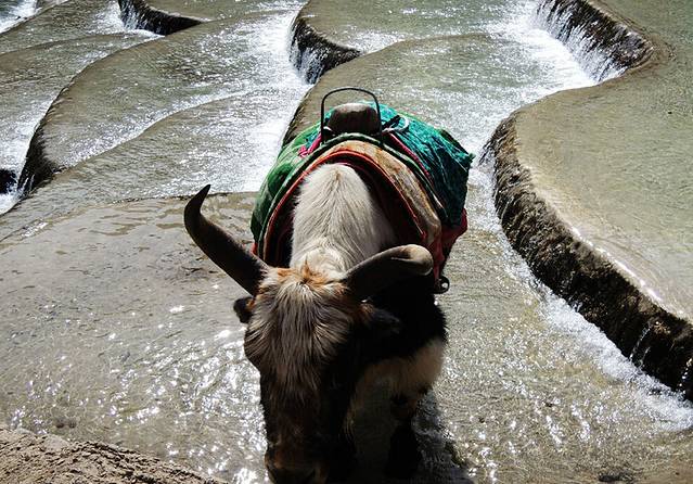 从雪山上下来后,随便吃了一餐,我们立刻转去了蓝月谷及牦牛村等地。