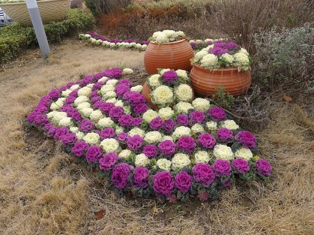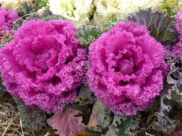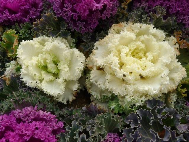 放大了是这个样子。摸上去硬硬的,比圆白菜硬而且水分少。冬日里有这种植物装点倒是也很靓丽。