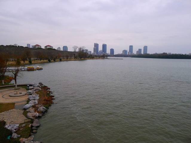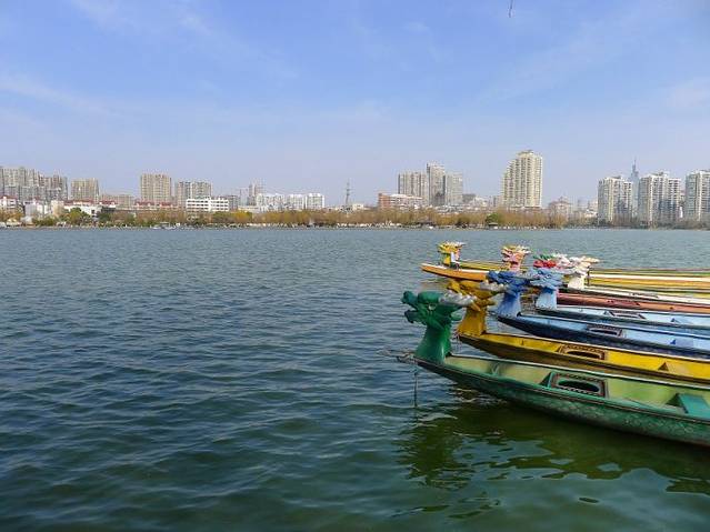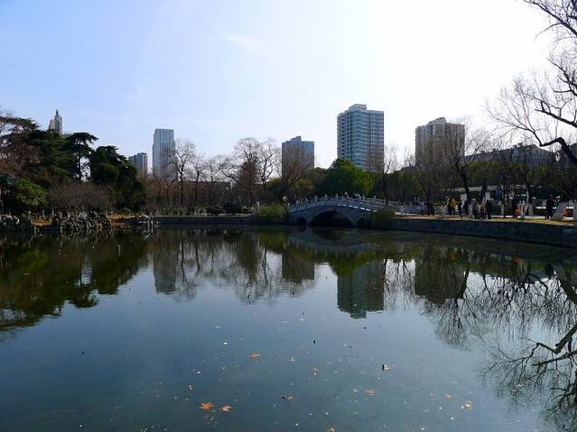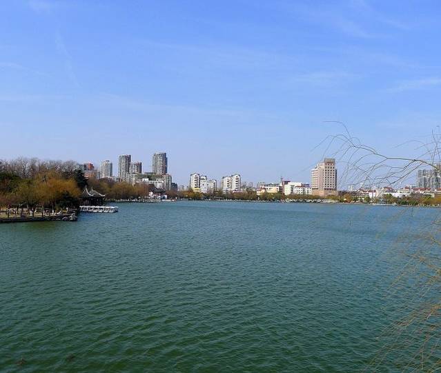 南京玄武湖公园。水域面积据讲达378公顷。南京火车站就在玄武湖北侧,是国内很少的建在湖边的火车站。旅客在火车站平台就能欣赏玄武湖倒影南京的景色。