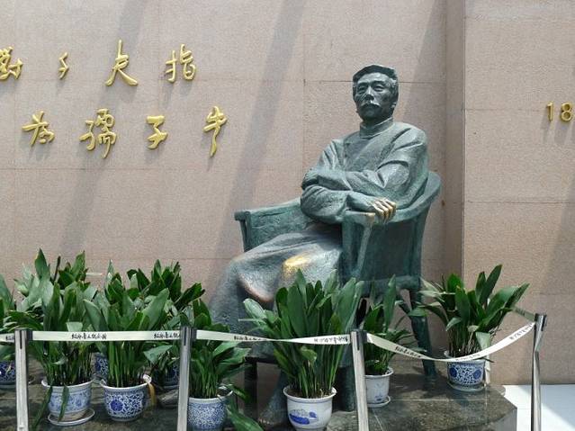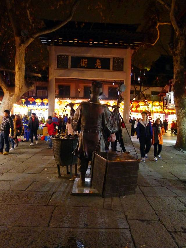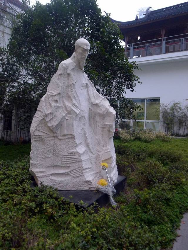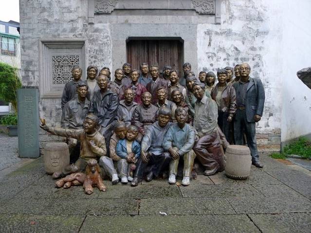 这便是咸亨酒店门前,孔乙己用手捂着茴香豆的形象。孔乙己被鲁迅描述成一个腐儒的形象,一个失败者,说他满嘴之乎者也,知道茴香豆的茴字有四种写法,写字漂亮,但只会给别人抄书,不会别的营生。我觉得孔乙己如果生活在现代,应该可以上百家讲坛的。倒是现在很多大学生毕了业找不到工作,由于受过高等教育又不肯去做体力劳动,有点像当年的孔乙己。