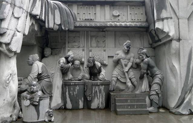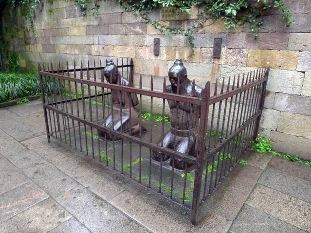 跪在岳飞墓前的秦桧和王氏。现在号召文明游览,请勿吐痰。