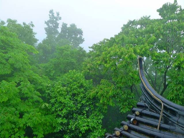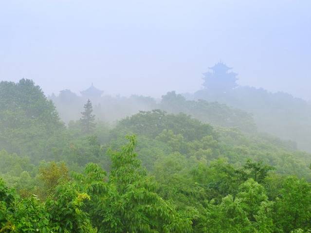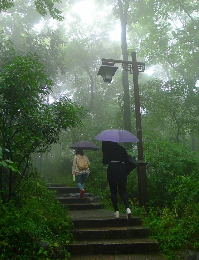 淫雨霏霏,游客置身其中,如临仙境,伞或许都可以不要撑。