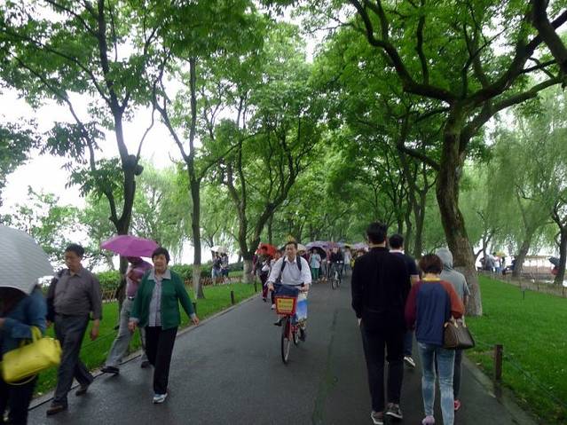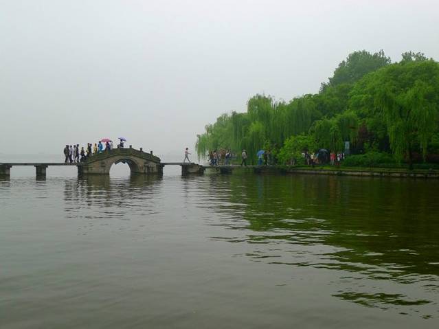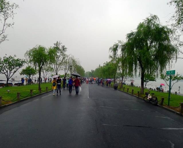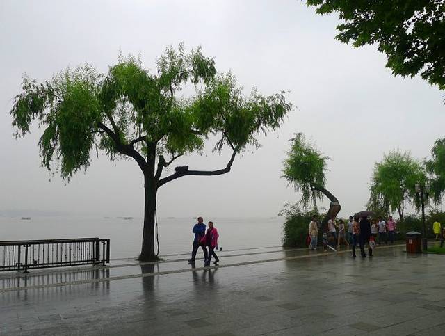 绿杨阴里白沙堤。如今白堤上铺的已经不是白沙,而是黑色的沥青。