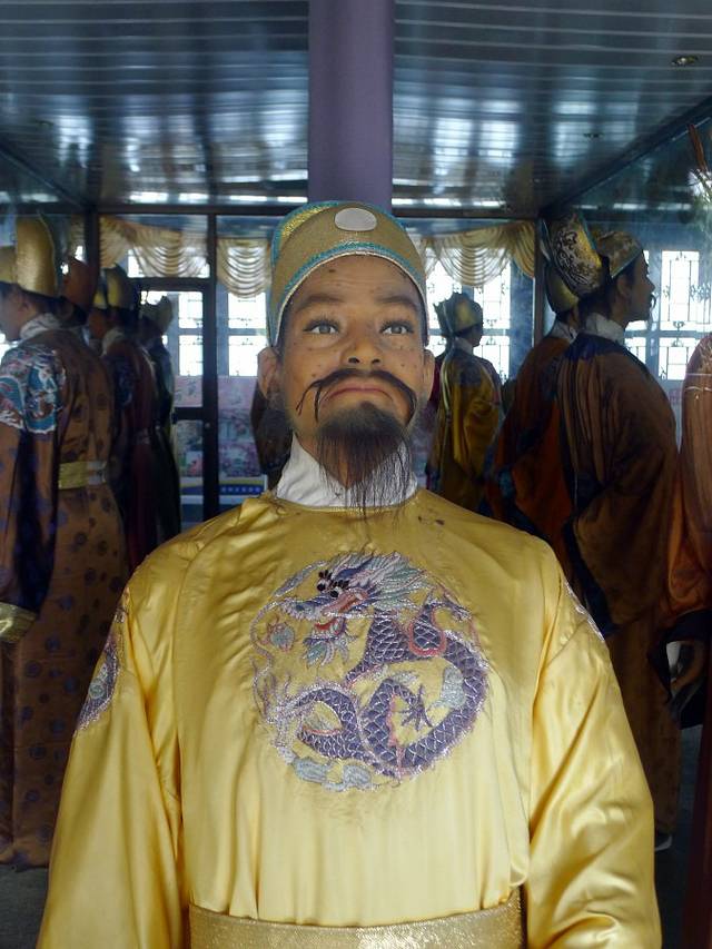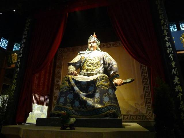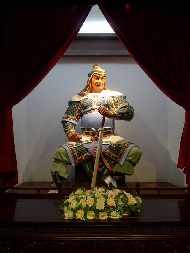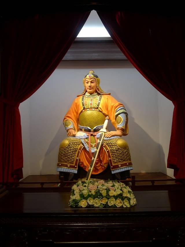 正殿的岳飞塑像。塑像衣着上有龙纹,不知岳飞本人是否愿意穿戴。