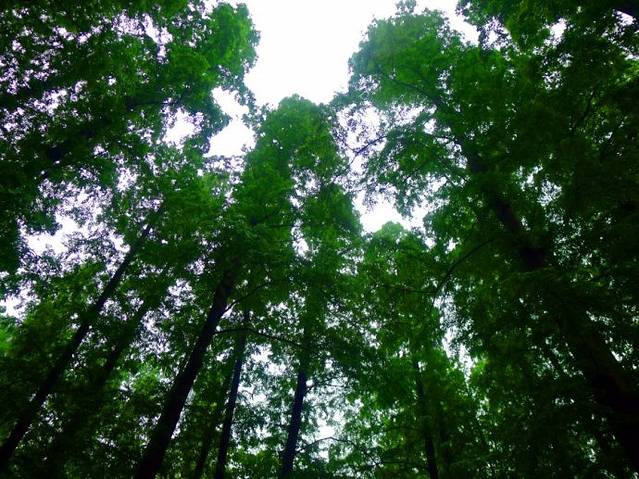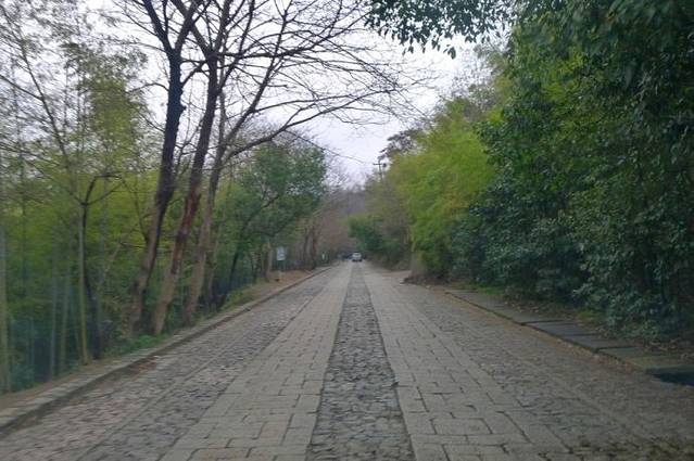 饭罢来到钟山(紫金山)。这是钟山的山路。有北方这个时节没有的绿树。