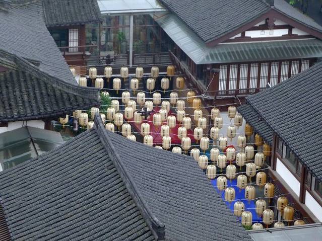 城内一处戏台,前面停着很多乌篷船,是我想起了鲁迅小时候坐在船上看社戏。不过当年迅哥儿坐的是“白篷船”,很高档的样子,不屑与乌篷船停在一起。但现在流传下来,这乌篷船却远比白篷船有名。