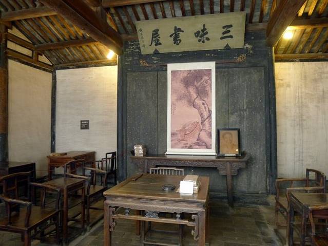 从百草园到了三味书屋。鲁迅笔下那幅画着鹿的画还在。左边的角落里便是鲁迅的座位,看面积当时寿镜吾老先生也只能教七八个学生。按鲁迅的描写他好像不太喜欢这个地方,但是鲁迅肯定知道如果没有这个地方,周树人恐怕也成不了鲁迅。