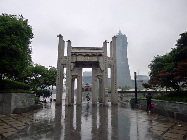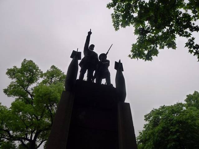 西湖边有纪念淞沪会战的雕塑。难道淞沪会战也波及到了天堂?