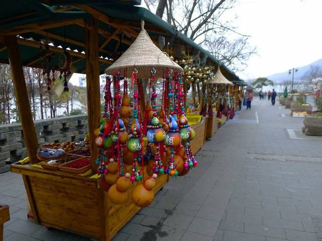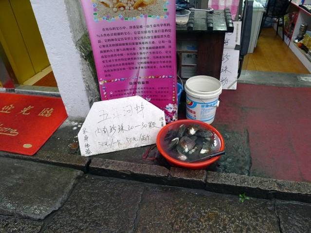这一家是卖诸暨珍珠的,有珍珠蚌让你亲自撬开,据说里边有几十颗珍珠。我对诸暨珍珠没什么印象,但是知道那里是西施的故里。上学时候有个师妹是诸暨人,长得确也很清秀。