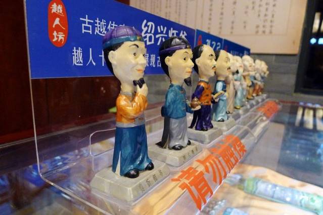 旁边一个店卖玩偶纪念品,绍兴师爷、孔乙己……