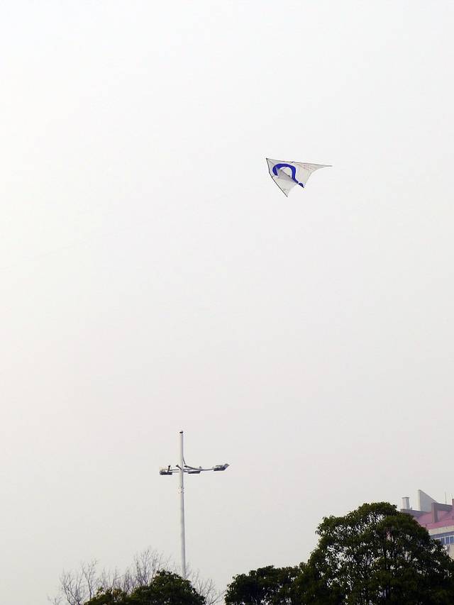 西华门公园内一位老先生在放风筝,我问他您的风筝为什么画个问号,他说我要“问天”。