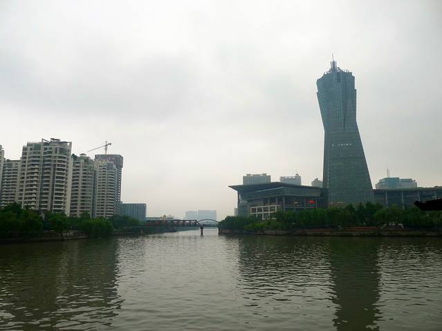运河上的武林门码头。码头附近一个歌手在唱汪峰的歌,唱得非常好,北京……北京……