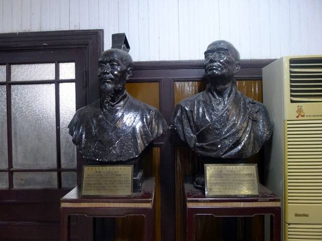 这是鲁家(周家)的香火堂,这张画像应该是鲁迅的祖父,有两位夫人。