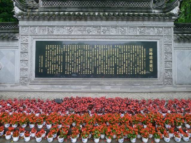 雷峰塔重建记。记载了雷峰塔的历史。最后一次坍塌就是鲁迅记载的1924年那次,现在的雷峰塔建于2002年。