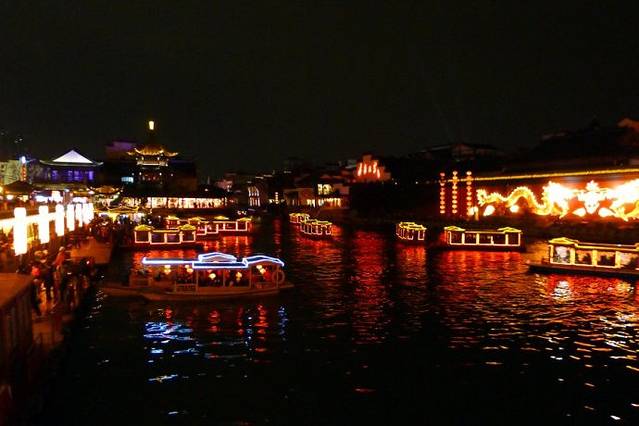这里南京人叫外秦淮河。秦淮河大体自东向西再向北流入长江,夫子庙附近的一段被称为内秦淮河。