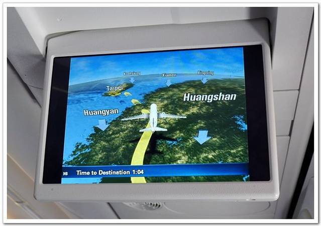 太原至台北,飞越了2100公里的空中距离。图标所指正在飞越黄山上空。