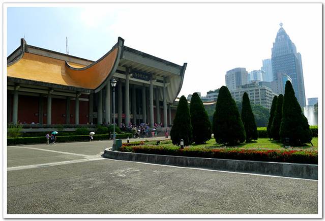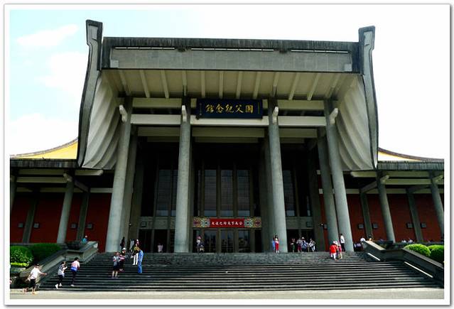 台北国父纪念馆介于忠孝东路、仁爱路、光复南路与逸仙路之间,为纪念国父孙中山先生百年诞辰而兴建,国父纪念馆于民国53(1964年)年筹建,落成于民国61年(1972年)5月,原隶属于台北市政府,民国75(1986年)年7月改隶台湾当局“教育部”,并合并阳明山中山楼,机关名称从国父纪念馆管理处易为国立国父纪念馆。该馆高30.4公尺、每边长100公尺、每边由14支灰色大柱,以黄色屋顶采顶起翘角像大鹏展翼的形状,全部面积共35000坪,为仿中国宫殿式建筑,巍峨雄伟。