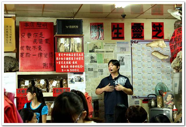 游客聚齐后,先由村长的儿子给大家讲解灵芝对人体的各种好处,然后品尝一杯灵芝茶。