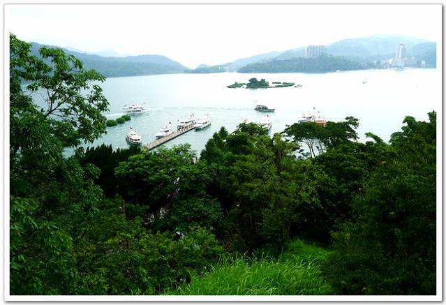游览台湾,日月潭是必去之地,素有没到过日月潭就等于没去过台湾一般。我们到达日月潭时天空飘着蒙蒙的细雨,整个湖面犹如被纱笼罩着一样。日月潭位于中国台湾省南投县鱼池乡水社村,是台湾唯一的天然湖,仅次于曾文水库的第二大湖泊,中国最美的湖泊之一,由玉山和阿里山之间的断裂盆地积水而成。湖面海拔748米,常态面积7.93平方公里(满水位时10平方公里),最大水深27公尺,湖周长约37千米,是台湾外来种生物最多的淡水湖泊之一。